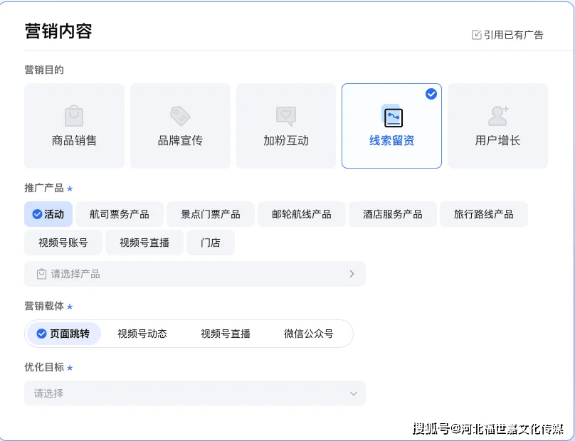 开户成功后,首要任务是明确自身营销目标——不同的目标,对应不同的广告形式,这是投放效果的关键。2026年朋友圈广告可满足多类营销需求,你只需明确核心诉求,服务商就会为你推荐最适配的形式: